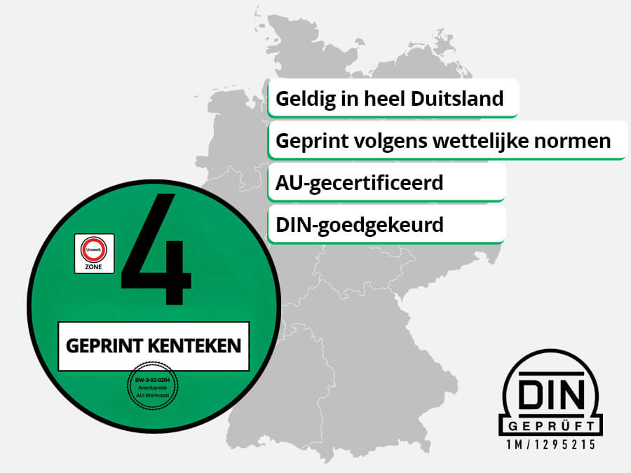 Een milieusticker voor Duitsland, ook wel bekend als een "Umweltplakette", is een milieucertificering die aantoont dat uw voertuig voldoet aan de emissienormen die gelden in de lage-emissiezones van Duitsland. Deze sticker is bedoeld om luchtvervuiling te verminderen en de luchtkwaliteit in stedelijke gebieden te verbeteren. Voertuigen zonder de juiste sticker mogen deze zones niet betreden, wat kan leiden tot boetes. De sticker wordt vaak in de voorruit geplakt en is verplicht in steden die milieuzones hanteren, zodat toezichthouders gemakkelijk kunnen controleren of voertuigen aan de eisen voldoen.